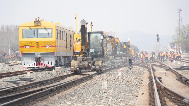 當日清篩的22號道岔位于石橋子站南部岔區,是沈丹線石橋子站內上行線重要的“咽喉”道岔。因該處道岔位置的特殊性,為最大限度降低因施工對運輸組織造成的影響,該段提前謀劃,優化施工組織,他們引入大型機械設備配合人工作業,提升作業效率與質量,為安全正點開通提供堅實保障。