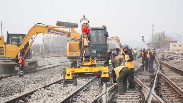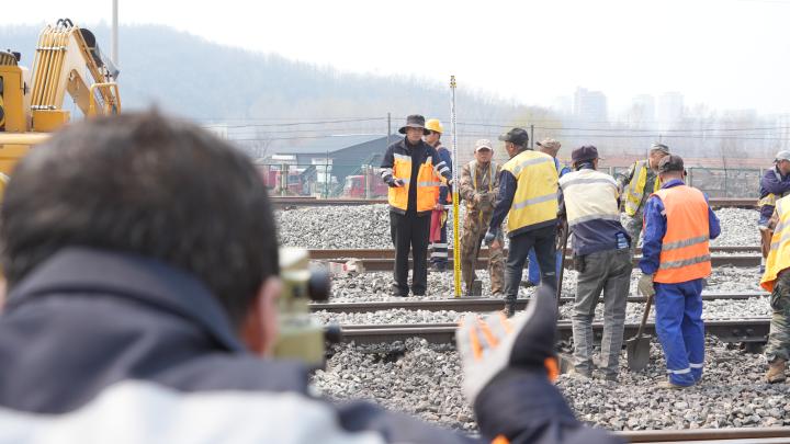 4月14日11時10分,在沈丹上行線石橋子站內22號道岔旁人頭攢動,機械轟鳴,循聲望去,一臺道岔清篩鉤機、一臺搗固鉤機以及三臺配備精細篩網的鉤機已按預定方案就位,與此同時,來自丹東工務段石橋子線路車間70余名干部職工身著黃色工作服,手拿撬棍、鐵鍬,在線路兩旁排隊等候施工命令的下達,一場以機械為主力、人工作業精準配合的道岔機械清篩施工即將有序展開。
