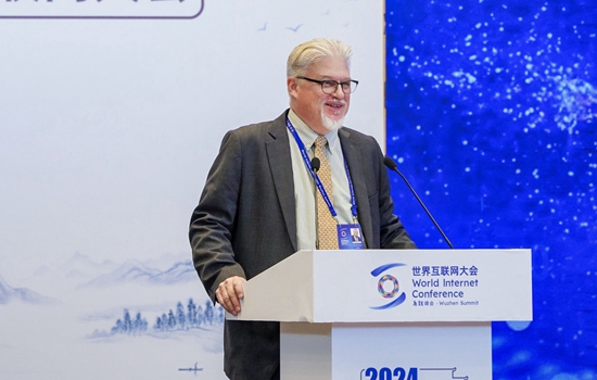 圖為美國信息產(chǎn)業(yè)機(jī)構(gòu)北京辦事處總裁繆萬德在“互聯(lián)網(wǎng)企業(yè)家論壇”上發(fā)言。(大會供圖)
