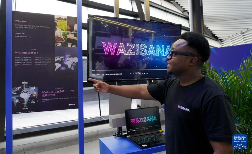 11月6日,來自津巴布韋的參展商在推介一款自主研發的供應鏈平臺。該平臺可用于連接非洲農民與買家和進口商。他希望將非洲的農產品通過平臺更多地銷往中國。新華社記者趙宇思攝