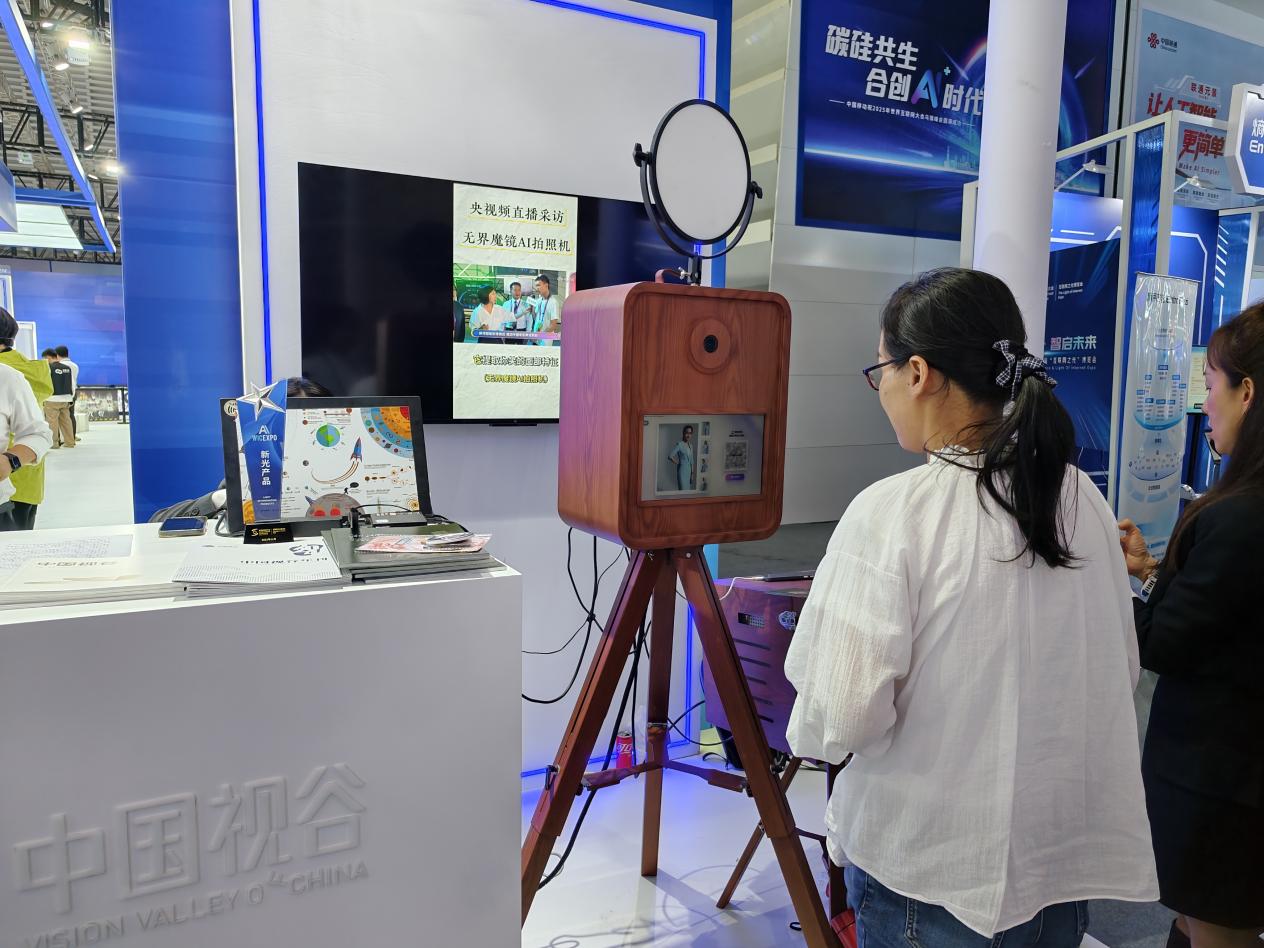 觀眾體驗中國視谷的無界魔鏡AI拍照機,其內置數百款風格迥異的寫真模板,依托AI視覺大模型,具備強大的影像生成能力。中國經濟網記者李方/攝