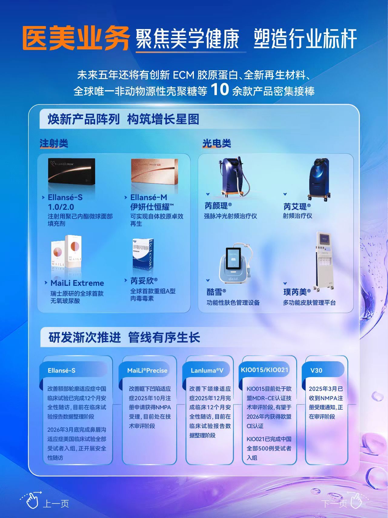 根據公司年報,未來五年,還將有創新ECM膠原蛋白、全新再生材料、全球唯一非動物源性殼聚糖等十余款產品密集接棒,推動高端品系列持續豐富完善,向全球醫美領先陣營堅定邁進。