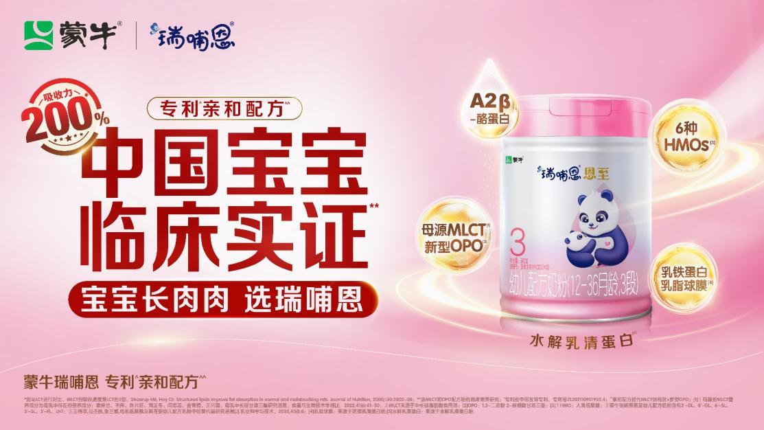 研發(fā)創(chuàng)新是模式重塑的關鍵一環(huán)。瑞哺恩作為蒙牛旗下高端嬰幼兒奶粉品牌,攜手頂尖大學研究機構共同發(fā)布全球首個專利親和配方實證成果,經(jīng)過中國寶寶臨床喂養(yǎng)研究表明,瑞哺恩獨創(chuàng)的專利親和配方(MLCT+新型OPO)展現(xiàn)出了卓越的喂養(yǎng)成效,有效提升嬰配粉產(chǎn)品實力并引領行業(yè)高質量發(fā)展。