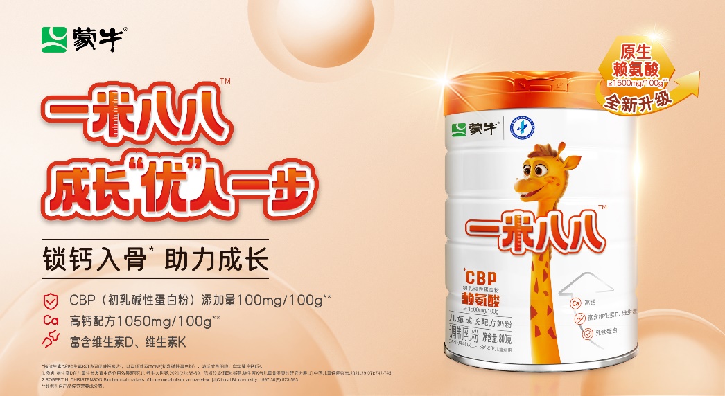 為了滿足兒童在不同成長階段的需求,蒙牛一米八八首創(chuàng)添加初乳堿性蛋白(CBP),鎖鈣入骨,志在為中國兒童骨骼成長發(fā)育提供專業(yè)的解決方案。上半年,與中國學生營養(yǎng)與健康促進會合作科研實證,蒙牛一米八八奶粉針對學齡前兒童干預組在60天內(nèi)身高增長明顯,相較于對照組,身高差異高達30%。憑借強大的科研優(yōu)勢及產(chǎn)品品質,蒙牛一米八八榮獲世界乳品創(chuàng)新獎的兒童乳制品優(yōu)秀獎,夯實了兒童骨骼發(fā)育營養(yǎng)領域的權威地位。