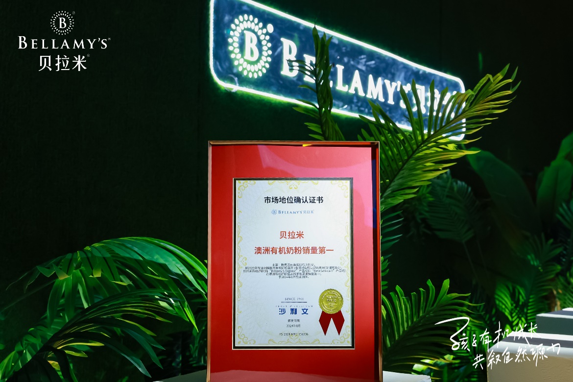 8月,貝拉米獲得全球增長咨詢公司弗若斯特沙利文授予的“貝拉米,澳洲有機奶粉銷量第一”市場地位確認證書,有機奶粉領導品牌的強勁實力再次得以彰顯。