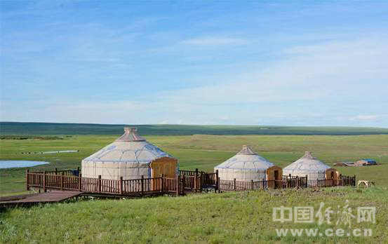 中國經濟網呼倫貝爾7月26日訊(記者 楊秀峰 張相成 文/圖)7月,酷熱難耐的盛夏卻是草原最美的季節。夕陽西下,在靜謐的呼倫貝爾草原深處,由奢華木帳、景觀蒙古包和全景帳房餐廳組成的克魯倫營地正在迎接晚歸的客人。