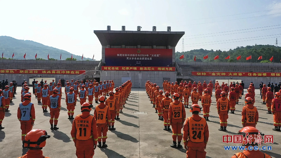 福建省森林消防總隊2024年“火焰藍”滅火專業實戰技能比武開幕式現場。 蔡增欣/攝