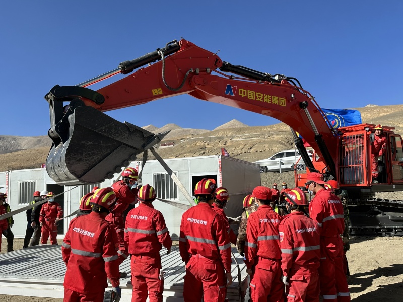 1月9日,在前方指揮部的統一調度下,繼完成受損房屋搜尋、用電需求保障、安置帳篷搭設、協助轉運重傷員等任務后,為了保障受災群眾溫暖過冬,中國安能在嘎旦村、玉白村方向組織開展場地平整作業,并進行活動板房的搭設。在嘎旦村投入60余人、10余臺重型救援裝備全力投入板房搭設工作。過程中,挖掘機、吊機等重型裝備與救援人員共同協作,搭建工作進展迅速。
