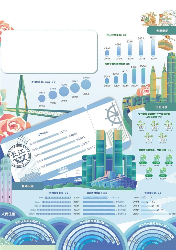 高水平開放新格局加快形成。圍繞打造內陸國際物流樞紐和口岸高地,重慶持續推動高水平對外開放。2025年,重慶港口貨物吞吐量突破2.4億噸,較10年前增長50%,西部陸海新通道江津班列開行量2199列,運輸貨物11萬標箱、同比增長22%。