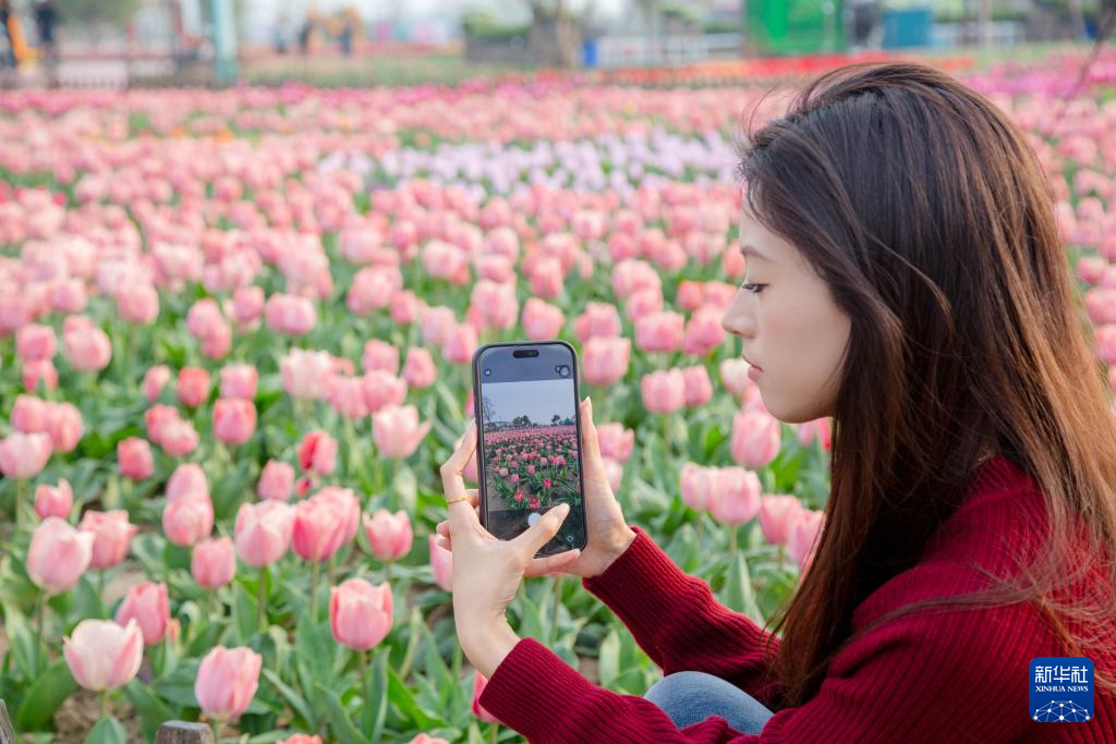 游客在鹽城大豐荷蘭花海景區拍攝郁金香(2026年3月29日攝)。新華社發(蔡艷瑩 攝)
