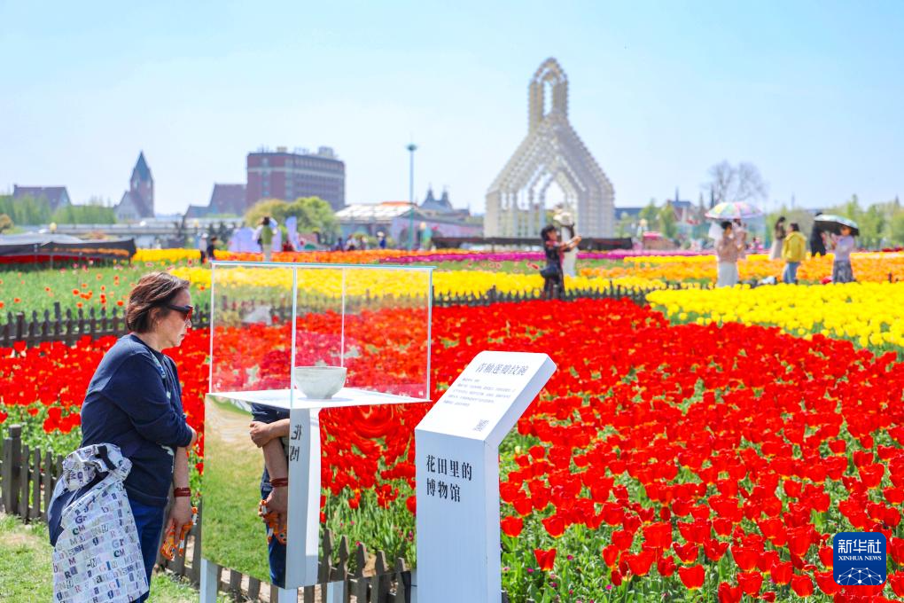 游客在鹽城大豐荷蘭花海景區休閑游玩(2026年4月15日攝)。新華社發(曹金晶 攝)