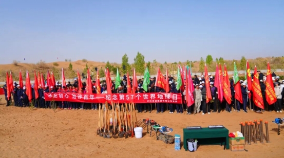 中國經濟網4月23日訊 4月22日,正值第57個世界地球日暨第二十二屆庫布其植樹節,內蒙古庫布其“綠水青山就是金山銀山”實踐創新基地同步聯動騰格里沙漠、烏蘭布和沙漠等“三北”工程沿線億利資源集團治沙基地,舉行“不忘初心,治沙百年”科技植樹活動。