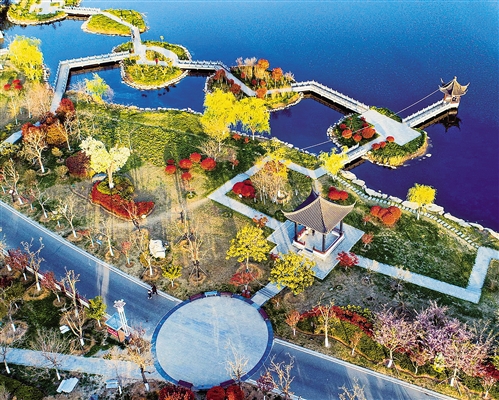 4月7日拍攝的江蘇省連云港市東海縣水晶公園。近年來,東海縣堅持走“生態優先、綠色發展”之路,通過實施生態修復,河道、村莊綜合整治等多項管理機制,為當地打造了“碧水藍天、岸綠花香”的良好生態。