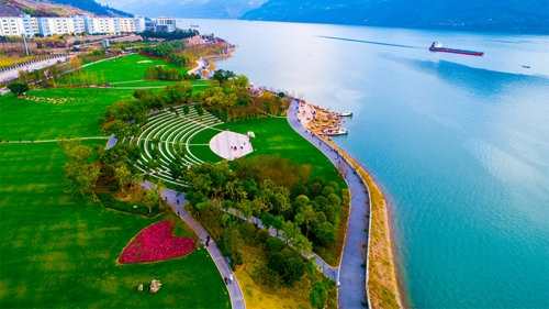 云陽縣濱江公園開闊整潔的月光草坪緊鄰長江,綠草如茵,綠樹成蔭,自行車道、跑步道、漫步道、驛站等休閑設施一應俱全,是這座移民新城的重要休閑娛樂場所。漫步月光草坪,42歲的庫區移民鐘燕興奮地指點著說,白天市民跑步鍛煉、釣魚游泳,晚上休閑散步、跳廣場舞,日子安逸得很!