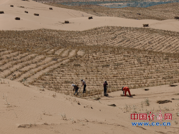 中衛(wèi)騰格里沙漠腹地治沙現(xiàn)場 中國經(jīng)濟(jì)網(wǎng)記者裴小閣/攝