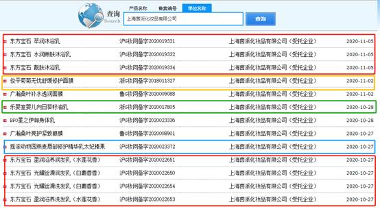 記者查詢國產非特殊用途化妝品備案平臺得知,上海茵派化妝品有限公司是紅地球明星草本精華卸妝水、俊平永久花純露、稚優泉嘭潤保濕清清水、樂嬰堂嬰兒山茶油霜等近500款產品(包含已注銷)的生產企業。
