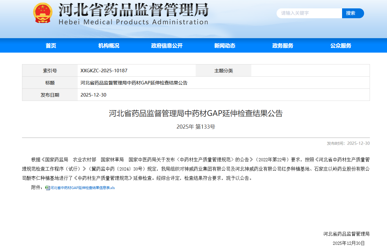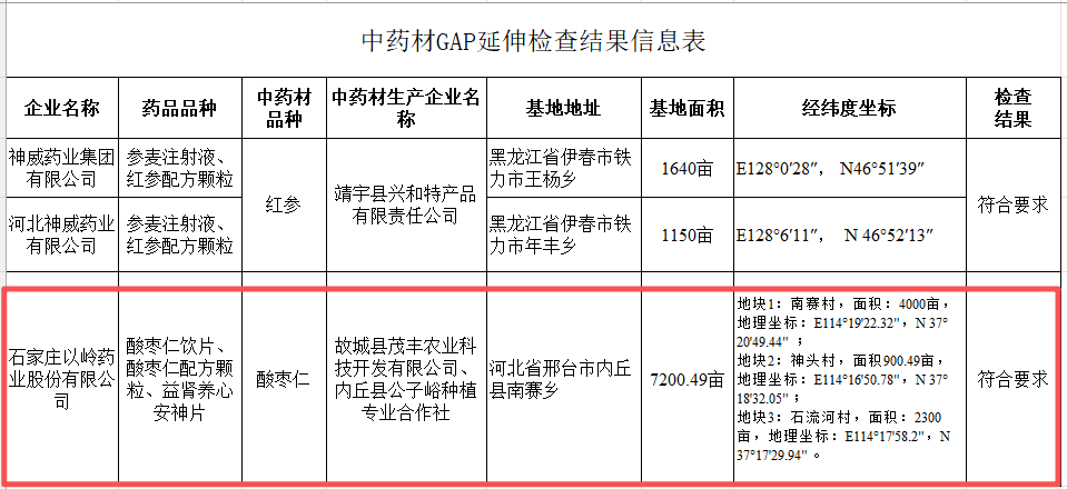 河北省藥品監(jiān)督管理局日前發(fā)布《河北省藥品監(jiān)督管理局中藥材GAP延伸檢查結果公告》,以嶺藥業(yè)酸棗仁種植基地通過河北省藥監(jiān)局組織的GAP延伸檢查,綜合評定符合要求。這是全國第一個通過GAP延伸檢查的酸棗仁基地。