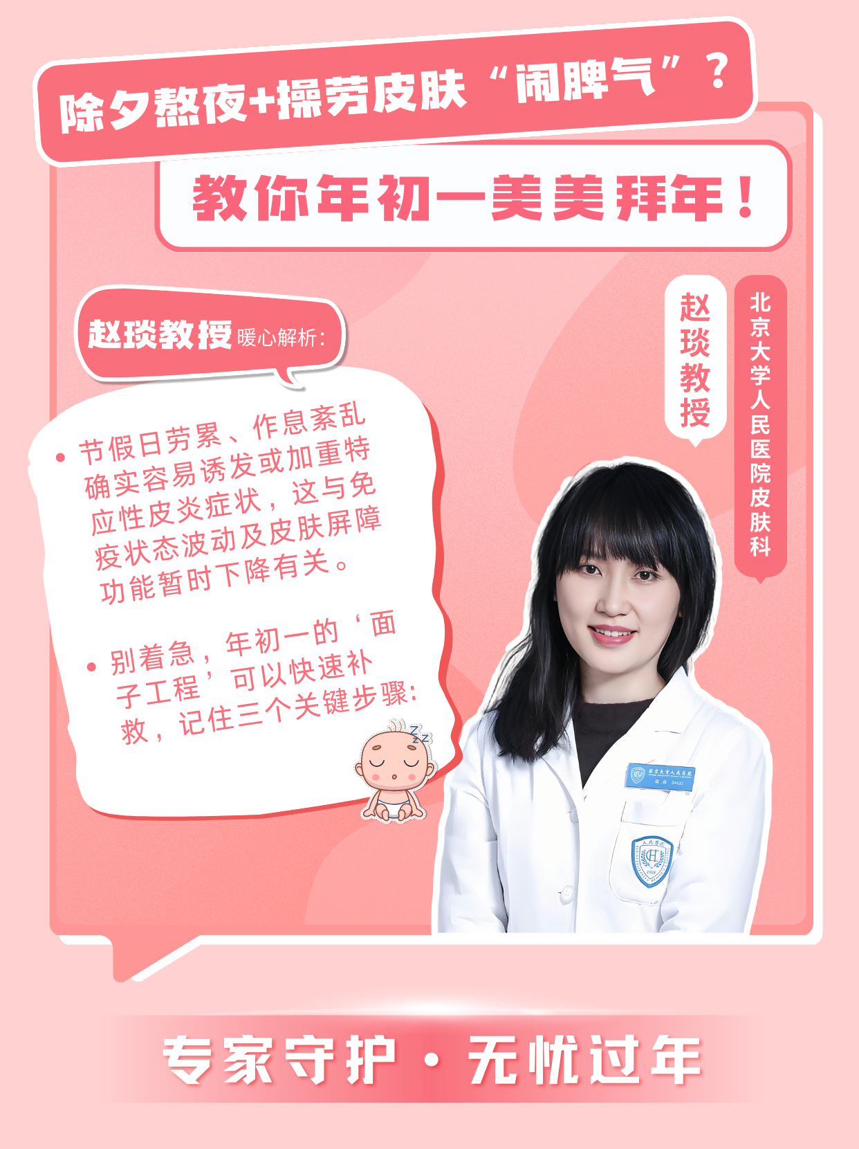 “節假日勞累、作息紊亂確實容易誘發或加重特應性皮炎癥狀,這與免疫狀態波動及皮膚屏障功能暫時下降有關。別著急,年初一的‘面子工程’可以快速補救,記住三個關鍵步驟: