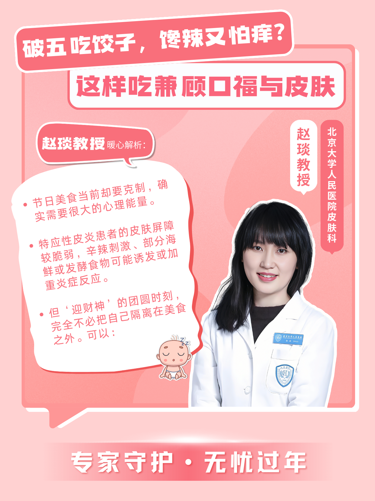 “節日美食當前卻要克制,確實需要很大的心理能量。特應性皮炎患者的皮膚屏障較脆弱,辛辣刺激、部分海鮮或發酵食物可能誘發或加重炎癥反應。但‘迎財神’的團圓時刻,完全不必把自己隔離在美食之外。”可以: