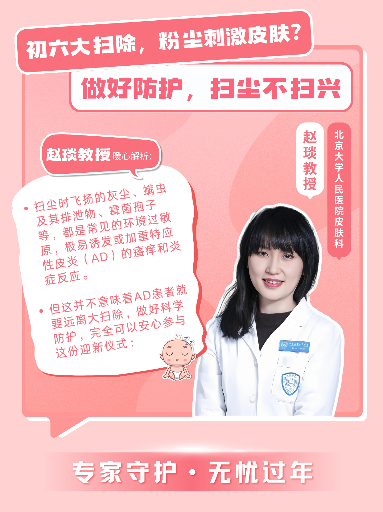 “掃塵時飛揚的灰塵、螨蟲及其排泄物、霉菌孢子等,都是常見的環境過敏原,極易誘發或加重特應性皮炎(AD)的瘙癢和炎癥反應。但這并不意味著AD患者就要遠離大掃除,做好科學防護,完全可以安心參與這份迎新儀式: