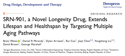 國際權威學術期刊《藥物設計、開發與治療》(Drug Design, Development and Therapy)刊發的最新研究顯示,一種名為SRN-901的新型藥物使哺乳動物壽命破紀錄延長33%、衰老速度減緩70%、腫瘤發生率降低30.53%。該項研究由賽諾根公司、清華大學及國藥賽諾根的科學家組成的聯合團隊發布,研究結果和相關論文引發了廣泛關注。