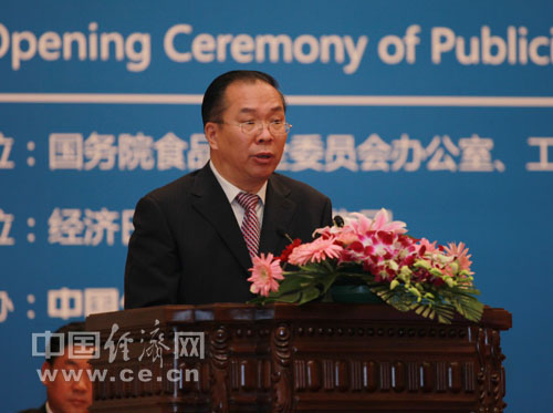 中共中央對外宣傳辦公室、國務院新聞辦公室副主任王國慶在第三屆中國食品安全論壇上致辭 王維亮攝
