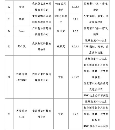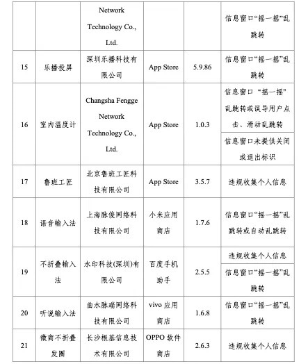 工信部稱,依據《個人信息保護法》《網絡安全法》《電信條例》《電信和互聯網用戶個人信息保護規定》等法律法規,工信部持續整治APP侵害用戶權益的違規行為,在近期組織的第三方檢測機構進行抽查中,共發現27款APP及SDK存在侵害用戶權益行為。侵權方式包括信息窗口“搖一搖”亂跳轉或誤導用戶滑動亂跳轉、違規收集個人信息、APP頻繁自啟動和關聯啟動、信息窗口未提供關閉或退出標識、強制用戶使用定向推送功能、SDK信息公示不到位以及強制、頻繁、過度索取權限等,涉及小米商店語音輸入法、vivo應用商店的聽說輸入法、App Stroe的樂播投屏等。