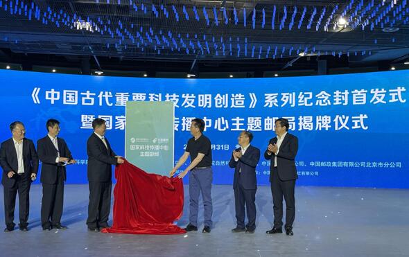 《中國古代重要科技發明創造》(以下簡稱“《古代科技封》”)系列紀念封首發式5月31日上午在中國科協新建成的國家科技傳播中心舉辦。來自舉辦方的代表及社會各界的郵友們相聚一道,為《古代科技封》(第一輯)共同揭幕。
