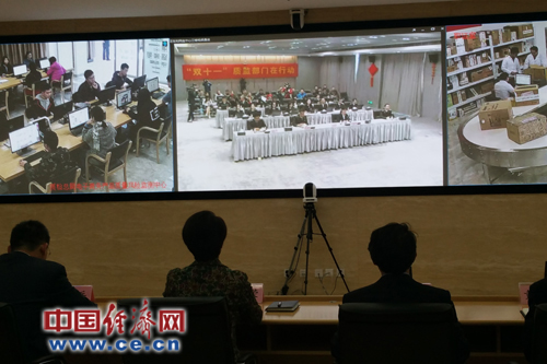 國家質檢總局與設在杭州的質檢總局電子商務產品質量風險監測中心(杭州)進行了視頻連線,全過程監管。中國經濟網記者蘇蘭/攝