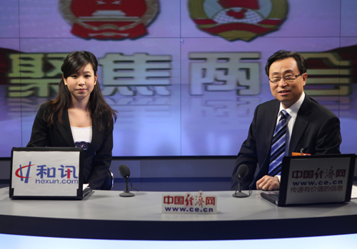 全國人大代表、山東禹王實業有限公司董事長兼總裁劉錫潛(右)做客中國經濟網(王耀峰 攝)
