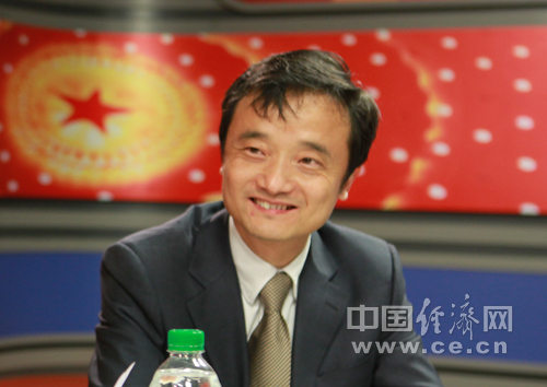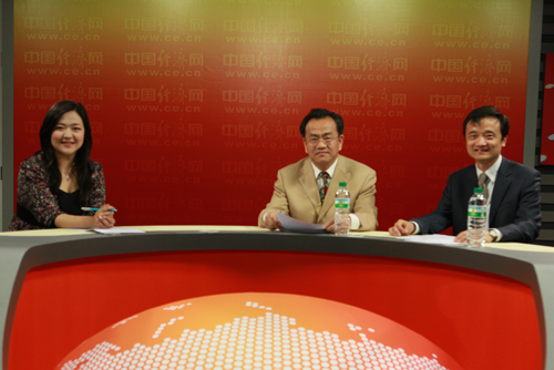 經(jīng)濟日報社產(chǎn)經(jīng)新聞部主任崔書文(中)和國家統(tǒng)計局中國經(jīng)濟景氣監(jiān)測中心副主任、高級統(tǒng)計師潘建成(右)今日做客中國經(jīng)濟網(wǎng) 王耀峰/攝