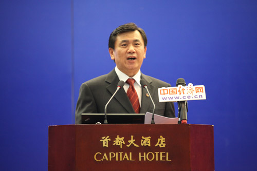由中國道路交通安全協會、中國汽車技術研究中心和中國經濟網共同主辦的“2013中國道路交通安全論壇”于8月29日在北京首都大酒店舉行。圖為交通運輸部副部長馮正霖致辭。中國經濟網 裴小閣 攝影
