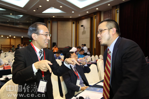 由中國道路交通安全協會、中國汽車技術研究中心和中國經濟網共同主辦的“2013中國道路交通安全論壇”于8月29日在北京首都大酒店舉行。圖為2013中國道路交通安全論壇與會嘉賓進行交流。中國經濟網 郝紅波 攝影