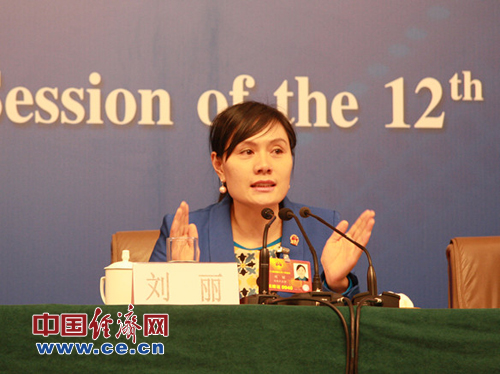 3月10日(星期日)15:00,在梅地亞中心多功能廳舉行“一線工人農(nóng)民代表談履職”為主題的記者會,邀請六位代表就相關(guān)問題回答中外記者提問。圖為廈門三度足浴有限公司職工劉麗。中國經(jīng)濟(jì)網(wǎng)記者劉瀟瀟/攝