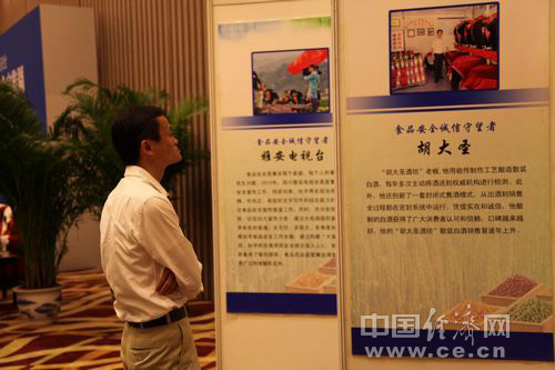 2013年全國食品安全宣傳周啟動儀式暨第五屆中國食品安全論壇6月17日在北京舉辦,今年主題為“社會共治 同心攜手維護食品安全”。圖為大自然保護協會中國主席馬云參觀食品安全“誠信守望者”展覽。中國經濟網 王耀峰/攝