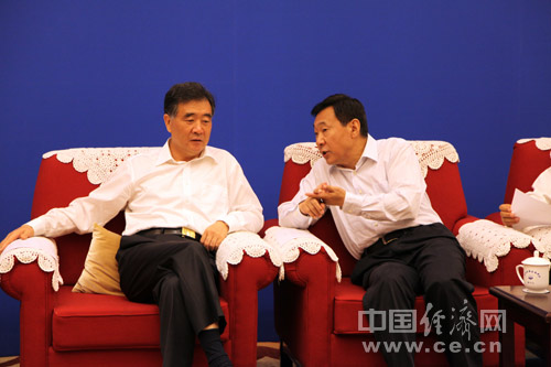 6月17日,以“社會共治、同心攜手維護食品安全”為主題的2013年全國食品安全宣傳周主場活動在北京舉行。國務院副總理汪洋出席活動并講話。圖為國務院副總理汪洋與國家食品藥品監督管理總局局長張勇交流。 中國經濟網 王耀峰/攝