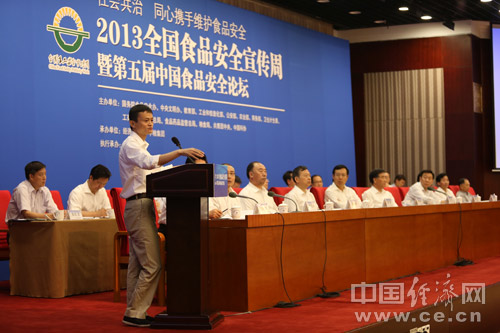 2013年全國食品安全宣傳周啟動儀式暨第五屆中國食品安全論壇6月17日在北京舉辦,今年主題為“社會共治 同心攜手維護食品安全”。圖為啟動儀式主席臺。中國經濟網 王耀峰/攝
