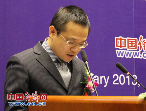 中國科學院預測科學研究中心1月26日(周五)在北京中科院數學與系統科學研究院舉辦“2013年中國經濟預測發布與研討會”。圖為科學出版社經濟管理出版分社社長陳亮致辭。中國經濟網楊瀟/攝影