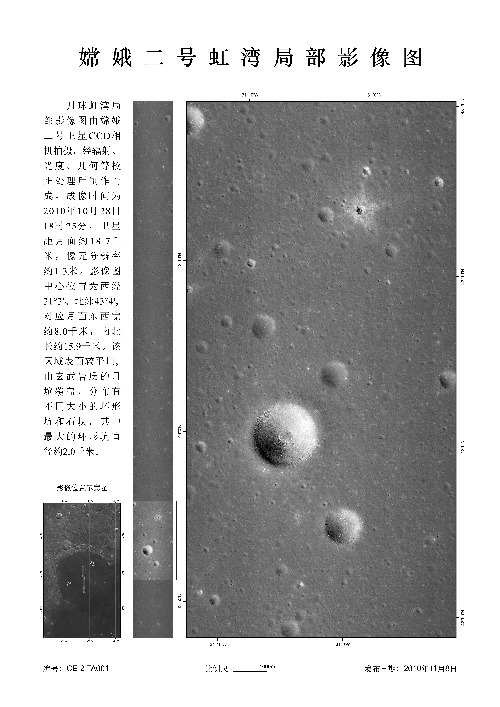 北京,2010年11月8日 國家國防科技工業局首次發布嫦娥二號月面虹灣局部影像圖 這是嫦娥二號虹灣局部影像圖(成像時間為10月28日)。