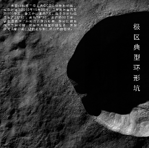 北京,2010年11月8日 國家國防科技工業局首次發布嫦娥二號月面虹灣局部影像圖 這是極區典型環形坑(成像時間為10月25日)。